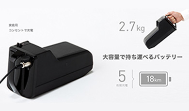 満充電(充電時間:約5時間)で最長約20km走行走行可能